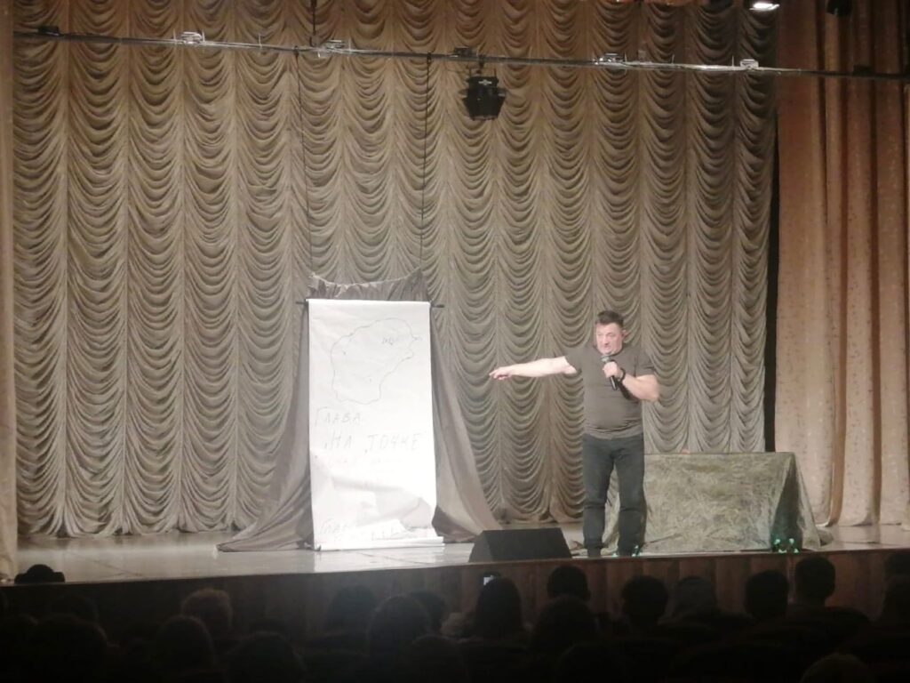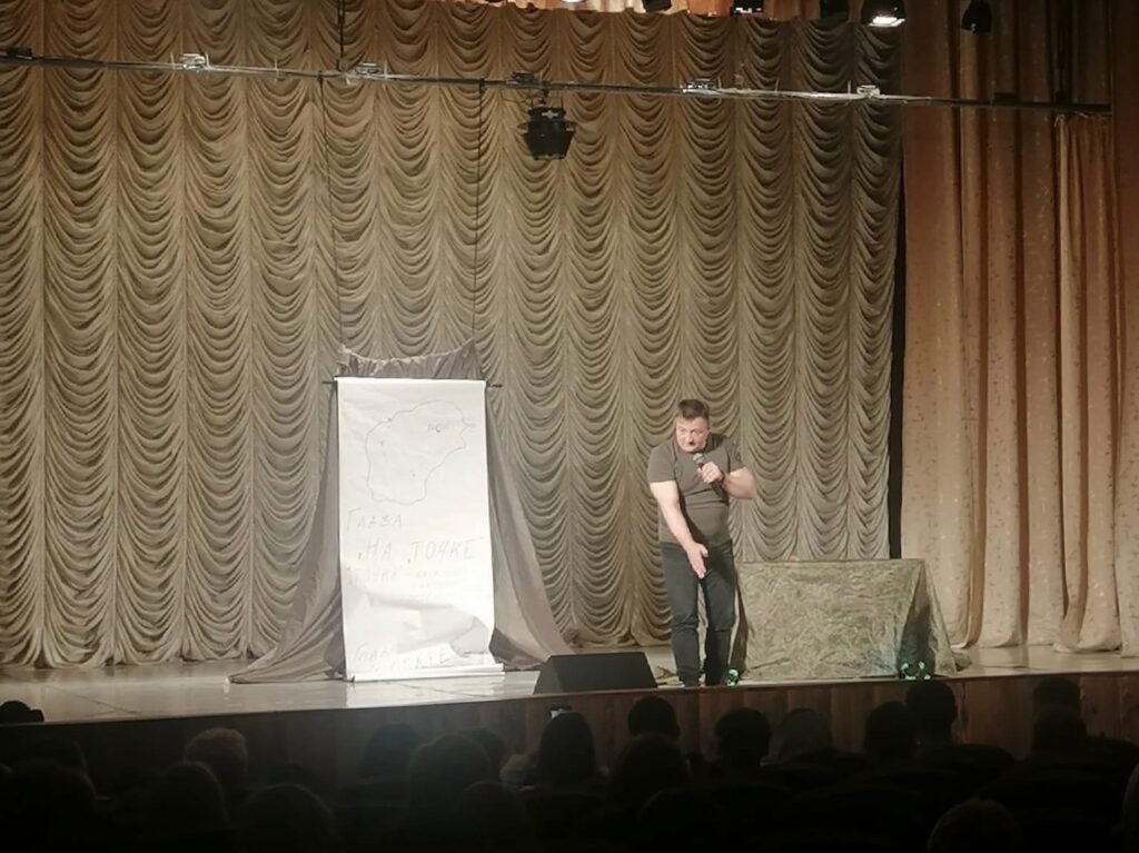31 октября студенты и педагогический состав Малиновского филиала Ачинского колледжа транспорта и сельского хозяйства посетили авторский моноспектакль «Внуки Тёркина» от приглашенного артиста — Алексея Максименко, который состоялся в Малиновском культурно-досуговом центре.