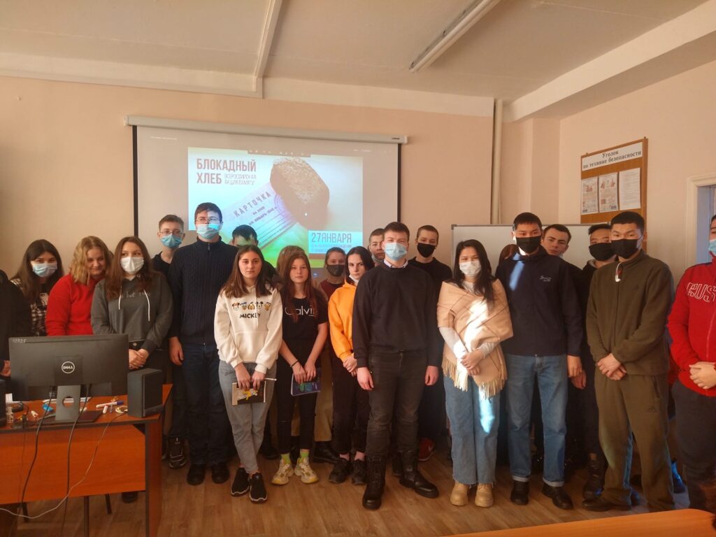 27 января 2022 года исполняется 78 лет со дня снятия блокады Ленинграда, в этот день в Малиновском филиале «Ачинского колледжа транспорта и сельского хозяйства» прошла Всероссийская акция памяти «Блокадный хлеб».