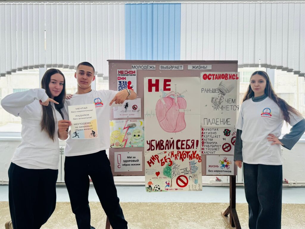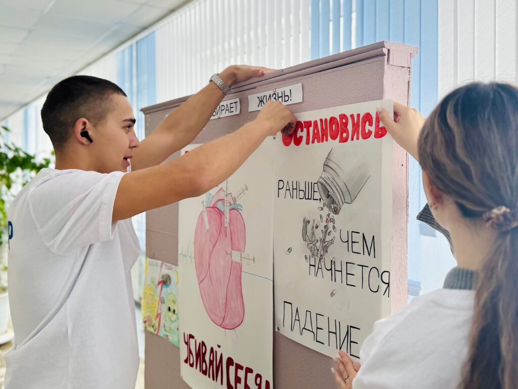 Команда волонтеров с энтузиазмом разместили все материалы на специальном стенде, чтобы каждый мог увидеть и прочувствовать важность темы. Такая совместная работа помогает привлечь внимание молодёжи к проблеме наркомании и вдохновляет на выбор в пользу жизни и здоровья.