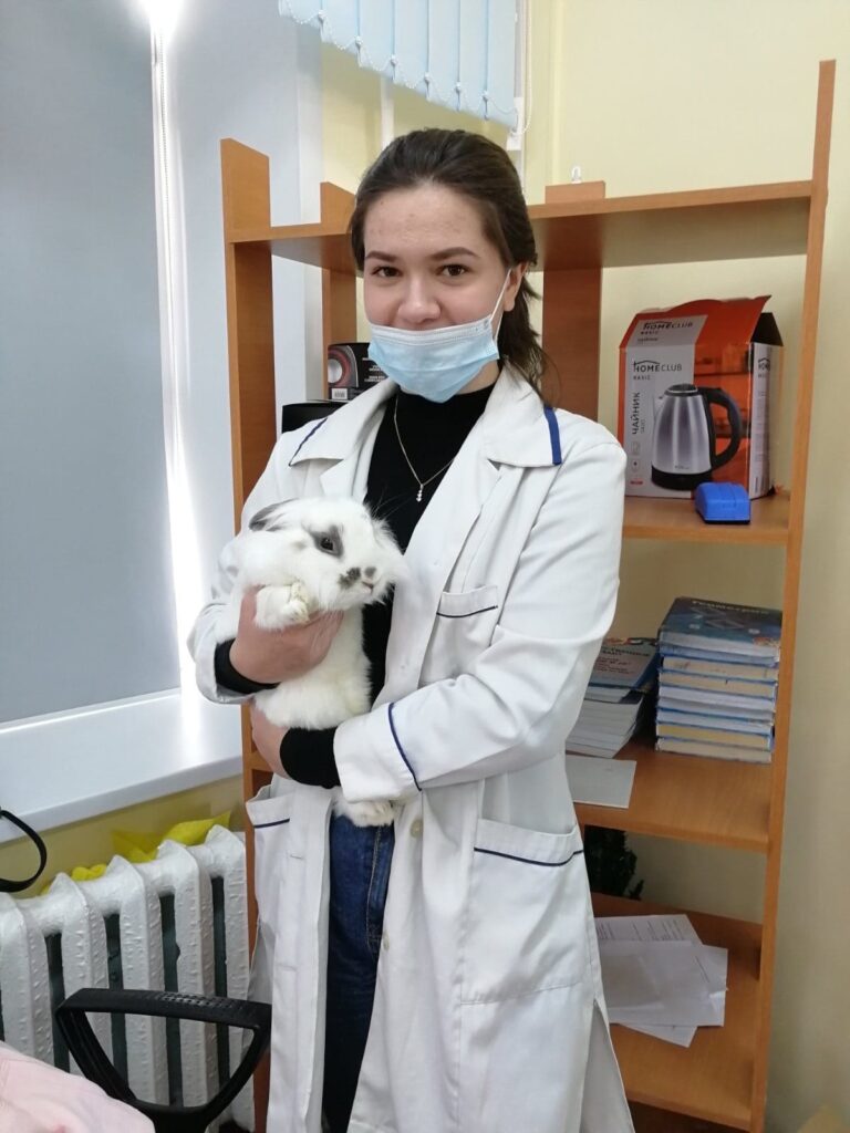 Но, больше всего, ребятам понравилось общаться с декоративным кроликом. Про направления продуктивности, породы, кормление и содержание кроликов поделилась своими знаниями Юлия, студентка 3 курса специальности «Ветеринария».