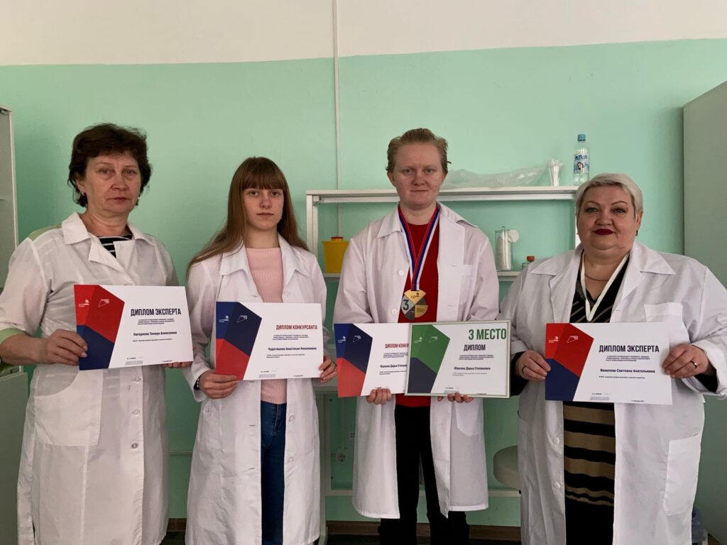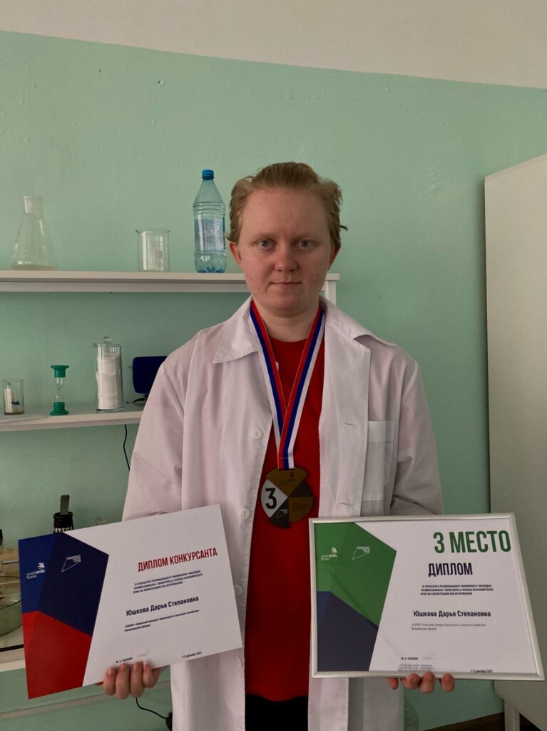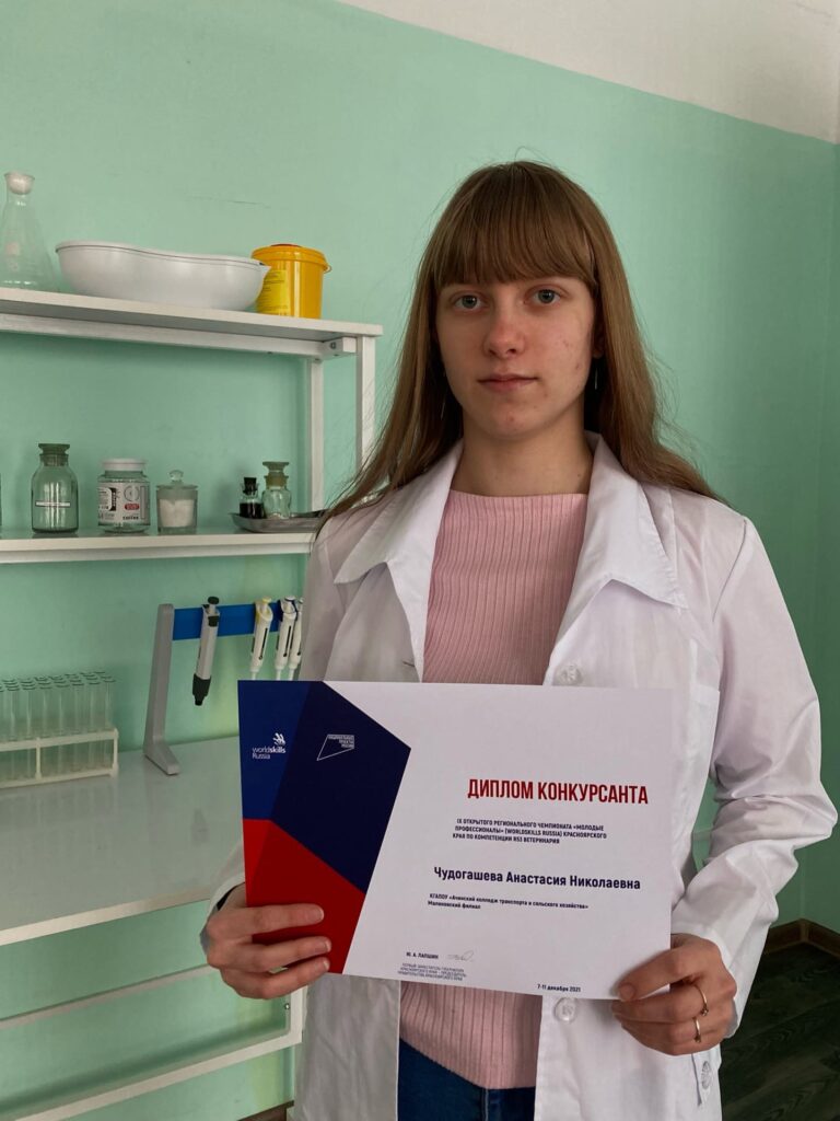 В компетенции «Ветеринария» бронзовая медаль вручена Юшковой Дарье; дипломом конкурсанта отмечена Чудогашева Анастасия!