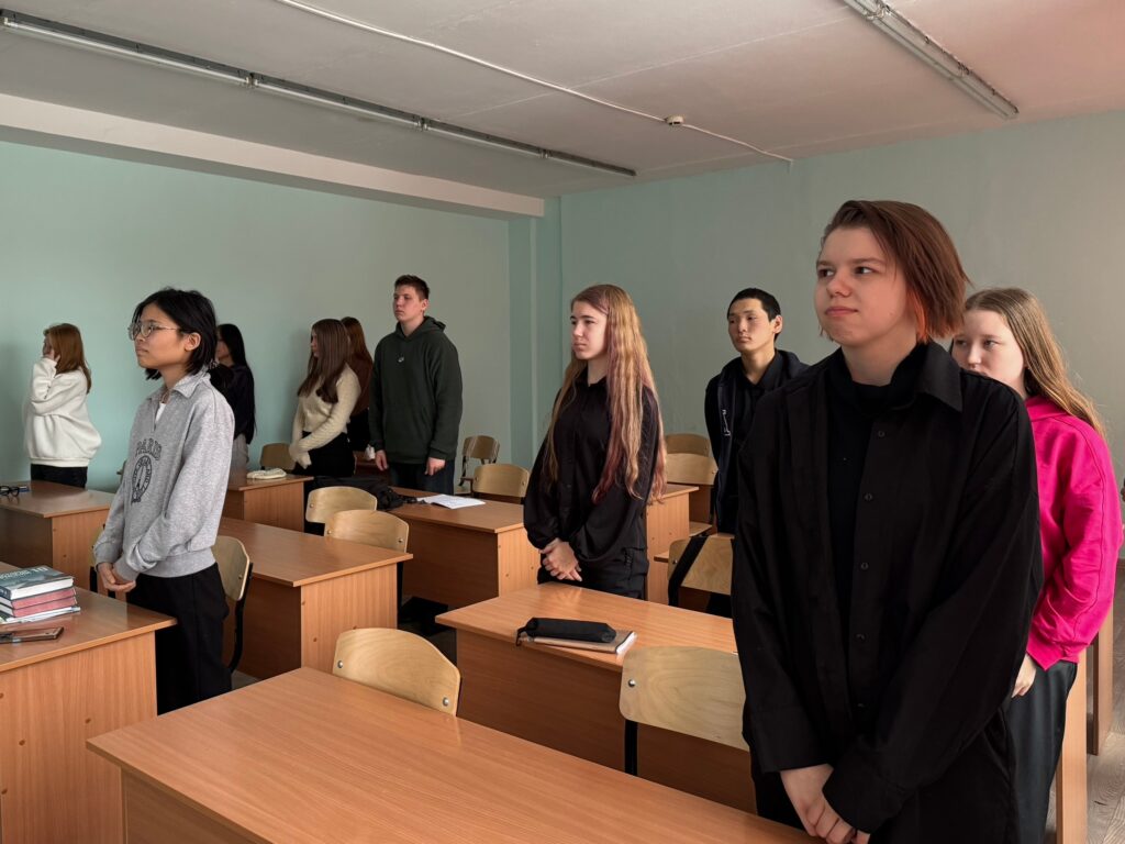 После урока все присутствующие почтили память погибших минутой молчания, выражая глубокое уважение и благодарность за их подвиг и верность долгу.